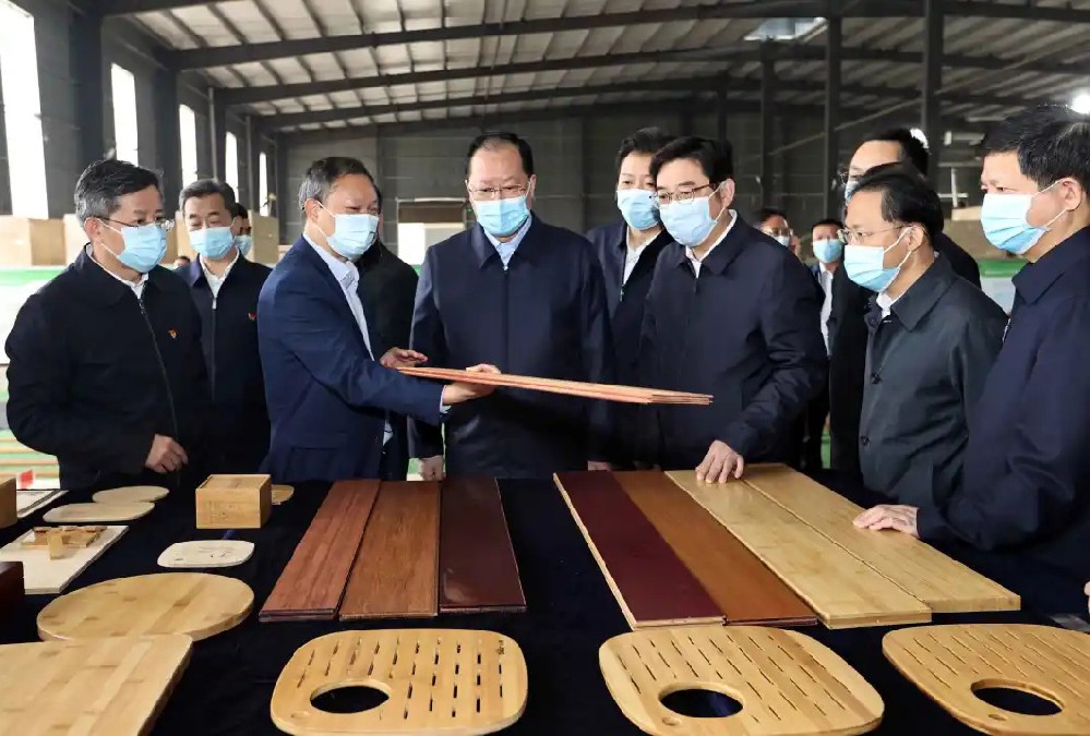 2025年6月16日,省政協(xié)副主席虢正貴來湖南桃花江竹材科技股份有限公司調(diào)研生態(tài)資源轉化與特色產(chǎn)業(yè)融合發(fā)展。公司董事長、省人大代表薛志成陪同并介紹情況。虢正貴充分肯定了桃花江竹材在竹資源利用及竹特色產(chǎn)業(yè)融合發(fā)展所取得的成果,他鼓勵企業(yè)繼續(xù)發(fā)揮龍頭優(yōu)勢,充分利用好桃江資源稟賦和產(chǎn)業(yè)優(yōu)勢,深化產(chǎn)學研融合,提升竹產(chǎn)業(yè)附加值,為民族地區(qū)生態(tài)資源高效轉化和特色產(chǎn)業(yè)融合發(fā)展探索更多經(jīng)驗。